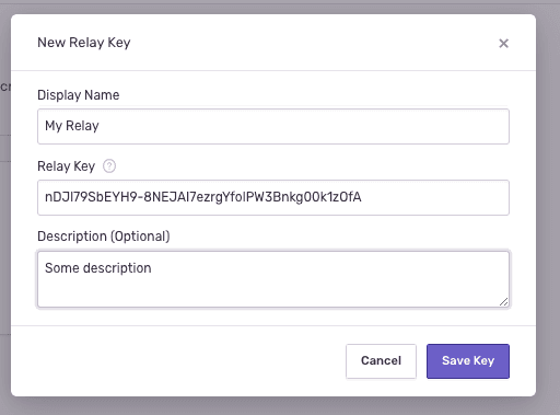 1. Click New Relay Key to add the key and save it: